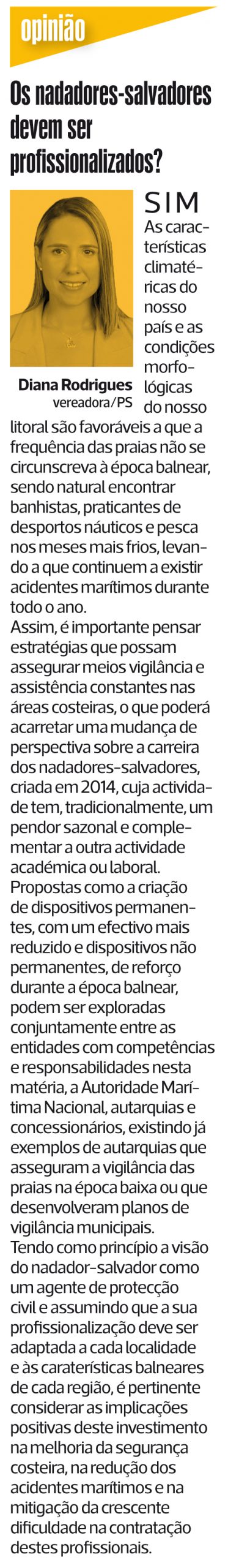 Assim, é importante pensar estratégias que possam assegurar meios vigilância e assistência constantes nas áreas costeiras, o que poderá acarretar uma mudança de perspectiva sobre a carreira dos nadadores-salvadores, criada em 2014, cuja actividade tem, tradicionalmente, um pendor sazonal e complementar a outra actividade académica ou laboral.