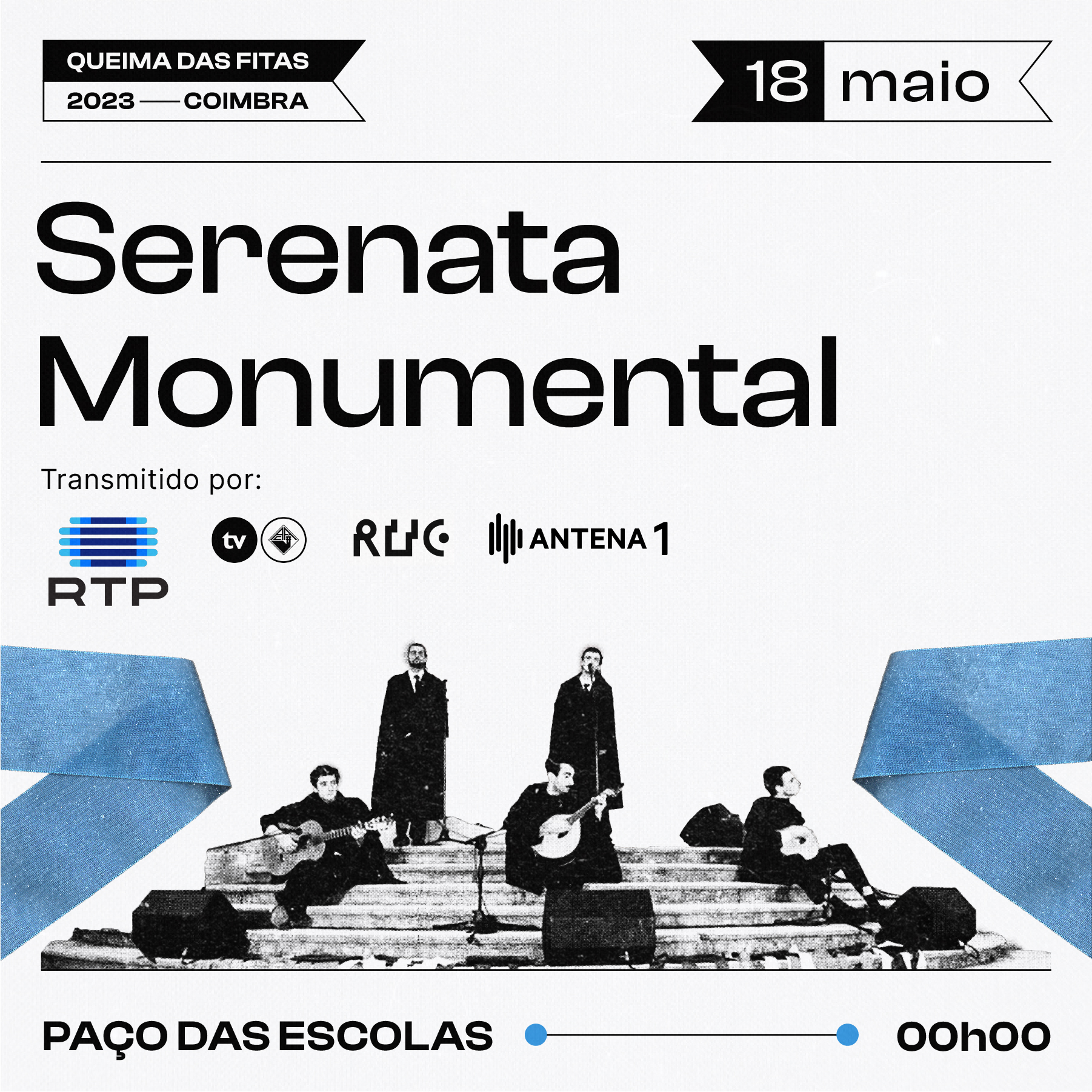 A Serenata Monumental será transmitida num ecrã gigante em frente à Porta Férrea da UC, bem comno na RUC, tvAAC, RTP1 e Antena1.