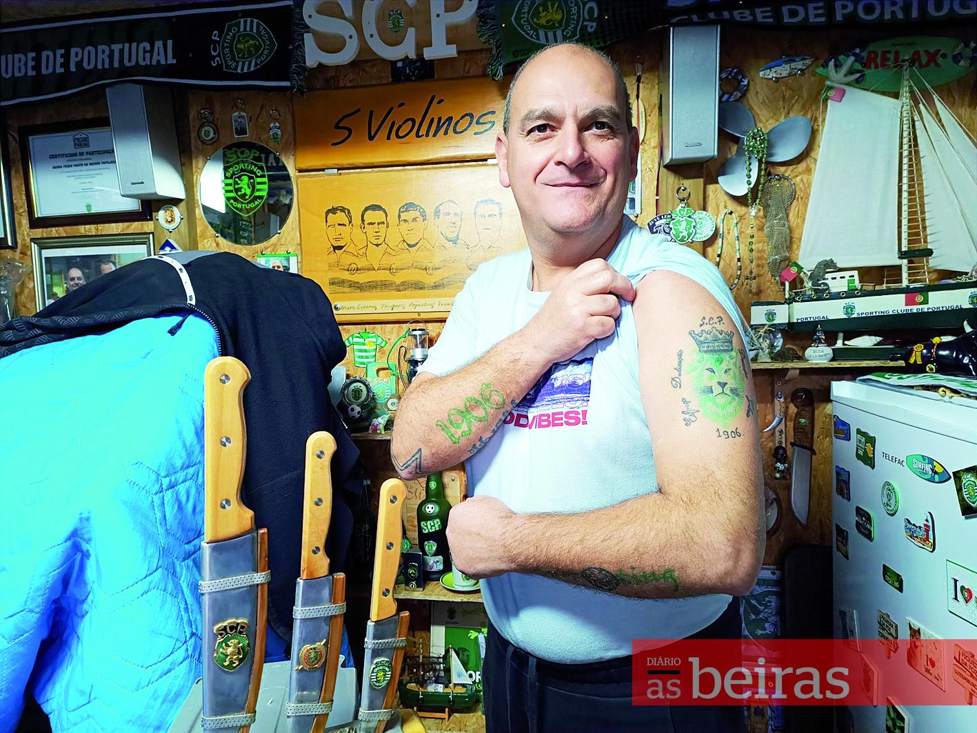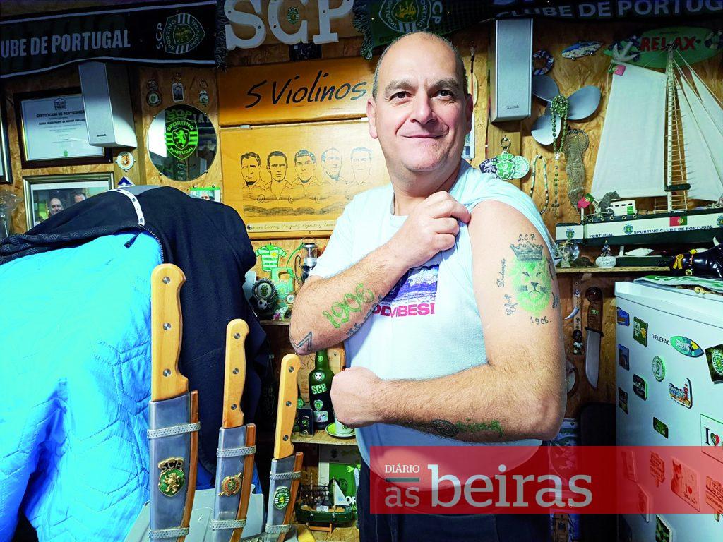 O faqueiro metálico, da sua autoria, é, entre as largas dezenas de objetos, aquele que mais valoriza. Mas são as tatuagens alusivas ao seu clube que ostenta no seu corpo que mais o orgulham. Depois do prognóstico, vem o diagnóstico “Isto [ser adepto ferrenho do Sporting] é uma doença”, afirmou, com a mesma boa-disposição que atravessou a conversa com o DIÁRIO AS BEIRAS.