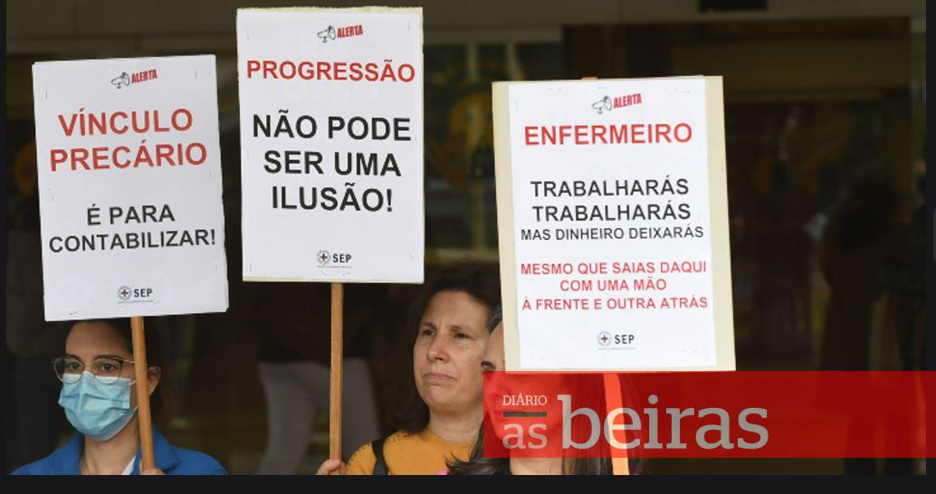 Cerca de duas dezenas de enfermeiros concentraram-se hoje em frente da Administração Regional de Saúde (ARS) do Centro exigindo pagamento de retroativos em falta e correta aplicação de pontos, que tem implicação na progressão salarial.